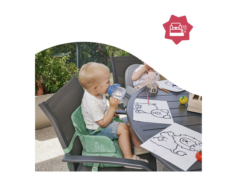 Mit der mobilen Sitzerhöhung kann dein Kind überall, wo du gerade bist, mit dir am Tisch essen. Diese Kindersitzerhöhung passt auf jeden Stuhl und ist ausgesprochen bequem, praktisch und sicher. Damit wird der Hochstuhl quasi überflüssig. Diese Sitzerhöhung ist ein Leichtgewicht (praktisch für den Transport) und lässt sich ganz einfach am Stuhl befestigen. Dein Kind sitzt 10 cm höher am Tisch und wird durch ein 3-Punkt-Gurtsystem sicher gehalten. In das Staufach unter dem Sitz passt alles hinein, was du unterwegs benötigst (Mahlzeiten, Snacks, Spielzeug usw). Darüber hinaus verwandelt sich die Sitzerhöhung durch die 2-in-1 Funktion in eine praktische Tragetasche und erhält zusätzlichen Stauraum für eine Mahlzeit, kleine Snacks und alles was dein Kind unterwegs benötigt. Mit dem großen Tragegurt lässt sich die Tasche sehr leicht transportieren. So kannst du deine Ausflüge in vollen Zügen genießen. Du wirst dieses Produkt lieben.