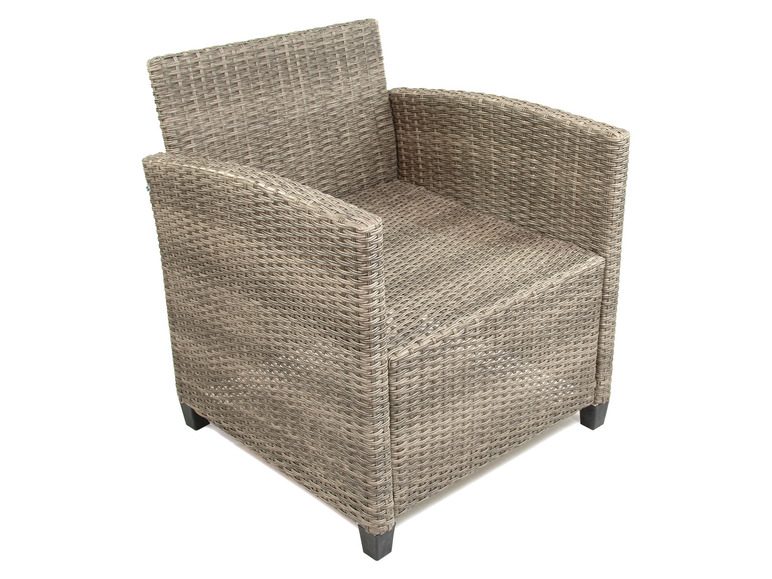 Material: | Polyrattan: 100 % Polyethylen, Rahmen: 100 % Stahl, Kissen: 100 % Polyester, Tischplatte: Kunststoff |