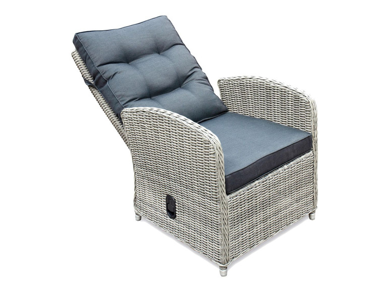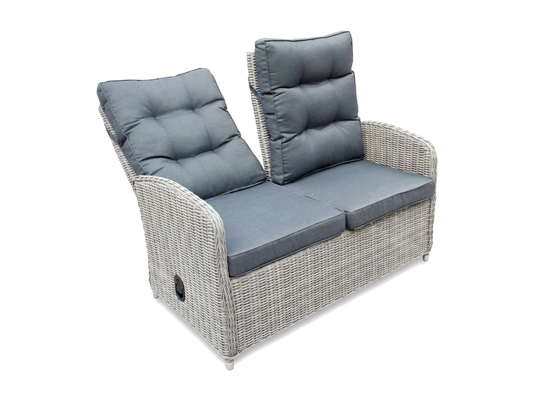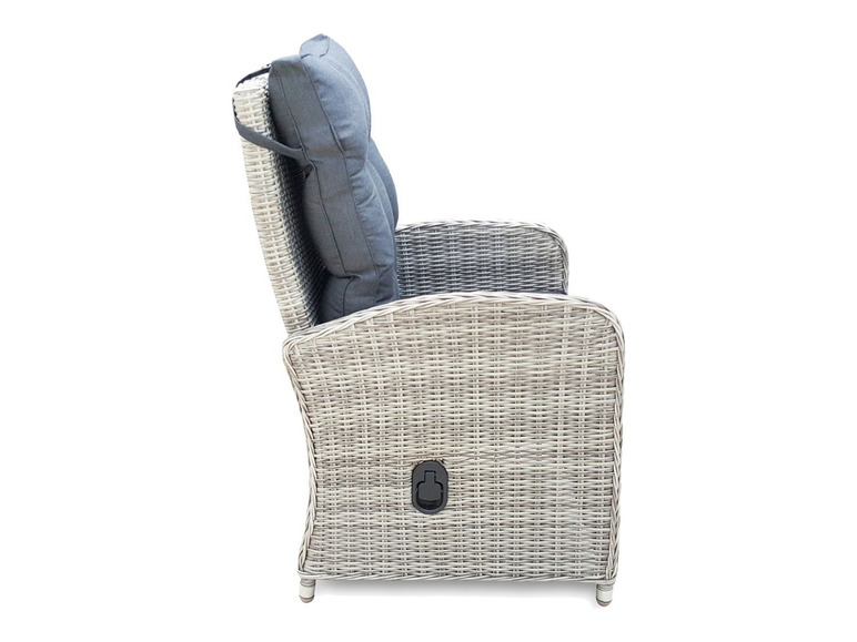 Die "Monte Carlo" besteht aus einem 2-Sitzer-Sofa, einem Tisch mit einer Sicherheitsglasplatte und zwei Hochlehner-Sesseln. Dank der Gasdruckfeder sind alle Rückenlehnen (Sofa und beide Sessel) stufenlos verstellbar. Die Rückenlehne des 2-Sitzer-Sofas ist getrennt von einander nutzbar, so kann jeder seine Rückenlehne individuell stellen. Der Tisch mit Sicherheitsglas hat eine zusätzliche Ablagefläche unter der Tischplatte zum Ablegen von z.B. Zeitungen, oder einer Kuscheldecke für die etwas kühleren Sommertage und Abende. Die extra dicken Auflagen bieten einen hohen Komfort. Die Bezüge aller Auflagen sind mit einem Reißverschluss versehen und können schnell und leicht abgenommen und bei 30° gewaschen werden.