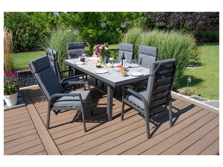 Material: | Gestell: Aluminium, Tischplatte: Keramik, Auflagenbezug: 100 % Polypropylene, Füllung Sitzkissen: 90 % Polyurethane + 10 % Polyester, Füllung Rückenkissen: 100 % Polyester |