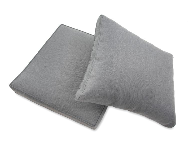 Material: | Kissenbezug: 100 % Polypropylene, Füllung Sitzkissen: 80 % Polyurethane + 20 % Polyester, Füllung Rückenkissen: 100 % Polyester |
