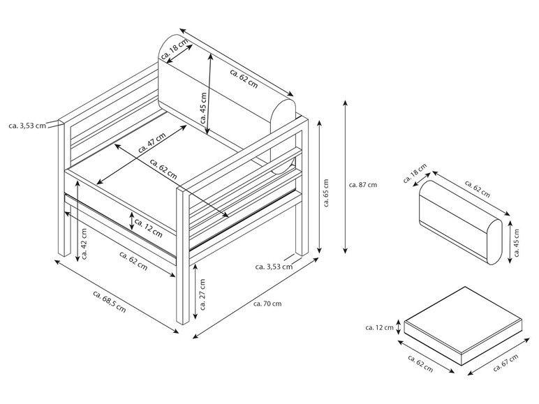 | Maße: | ca. L 68,5 x B 70 x H 65 cm |