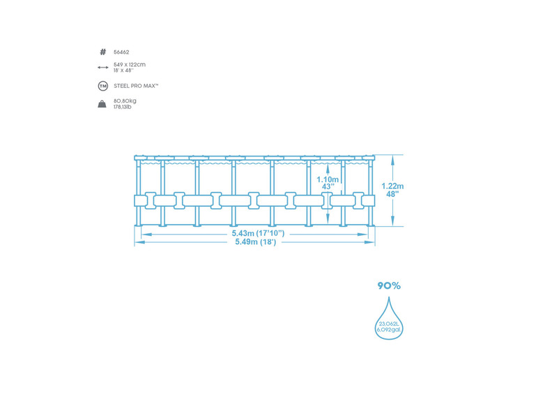 Steel Pro MAX™ Frame Pool Komplett-Set mit Filterpumpe, ca. Ø 549 x 122 cm