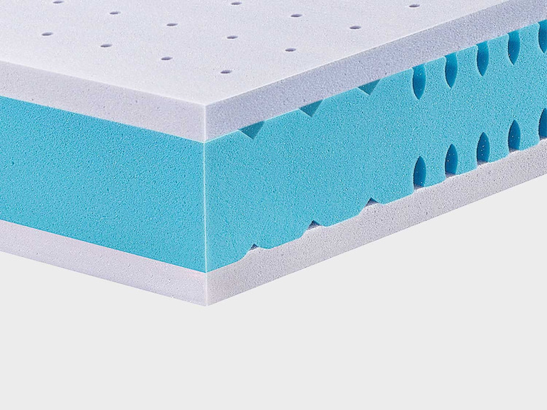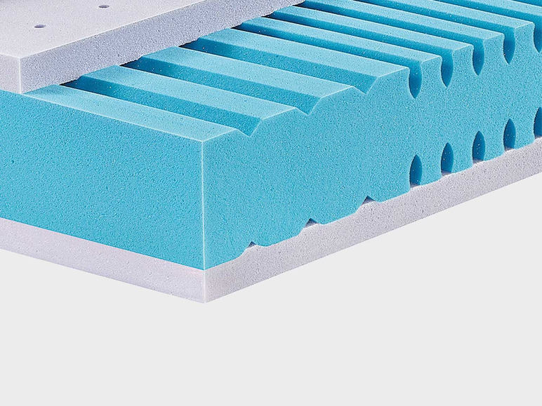- Kernaufbau: ca. 14 cm hoher 7-Zonen Kaltschaumkern mit beidseitiger je 4 cm hoher Gelschaumabdeckung