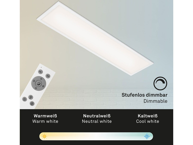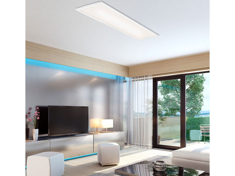 Die moderne, weiße LED Deckenlampe erhellt auch Ihre Räume ganz nach Ihren Wünschen. Durch die Dimmfunktion und die Möglichkeit der Farbtemperatursteuerung können Sie die Lichtverhältnisse optimal auf die räumlichen Gegebenheiten anpassen. Durch die mitgelieferte Fernbedienung kann das LED-Panel bequem vom Sofa aus gesteuert werden.
