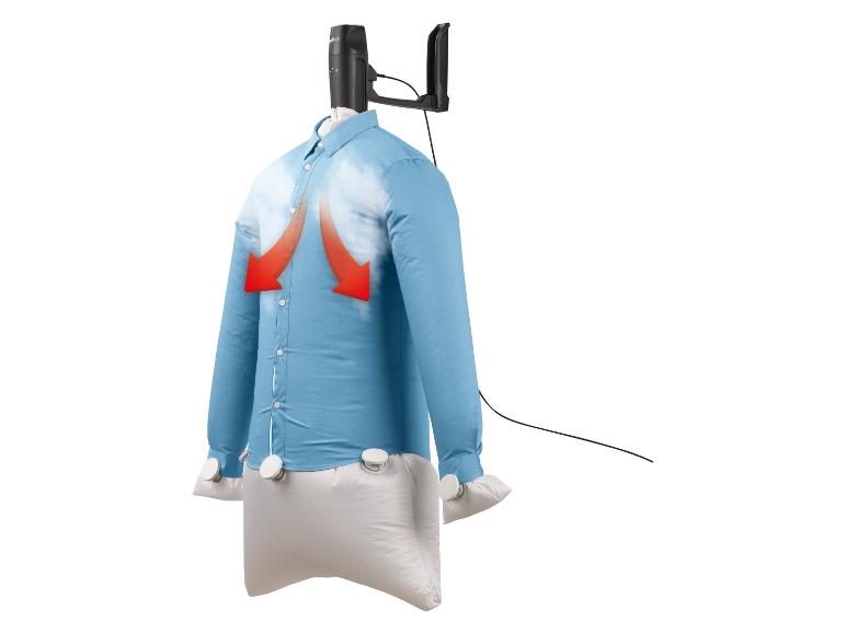 Lieferumfang: | 1 x Bügler-Hauptgerät, 1 x Bügler-Aufhängung, 1 x Nylon-Ballon (Bügelpuppe), 5 x Gewichts-Clip, 1 x Aufbewahrungstasche, 1 x Netzkabel mit Netzstecker |