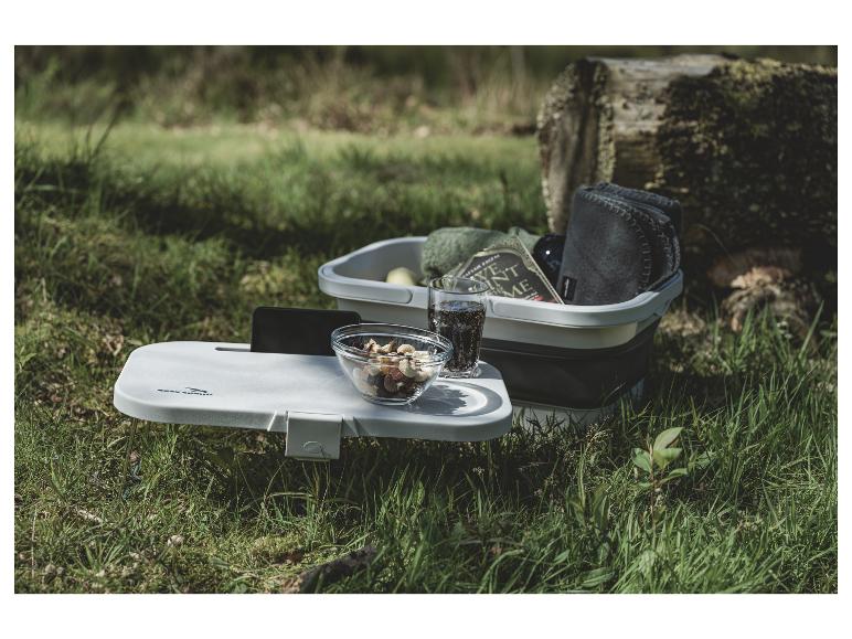 Der zusammenklappbare Picknickkorb mit Tisch bietet eine kompakte Aufbewahrung, während sich der Deckel in einen praktischen Picknicktisch verwandelt, in dem Getränke sicher aufbewahrt und Mobilgeräte aufgestellt werden können. Dank des einfachen Verriegelungsmechanismus und der praktischen Griffe lässt er sich leicht transportieren, öffnen und zusammenklappen und ist bruchfest und somit langlebig.