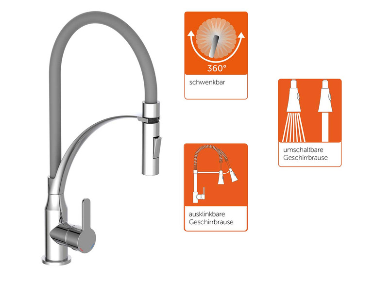 - Die Spültischarmatur verfügt über eine ausklinkbare Geschirrbrause mit zwei Strahlvarianten und bietet damit vielfältige Einsatzmöglichkeiten