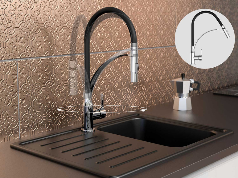 - Küchenarmatur ausziehbar mit 360° Schwenkbereich für einen vielseitigen Einsatz - auch ideal für Doppelspülbecken