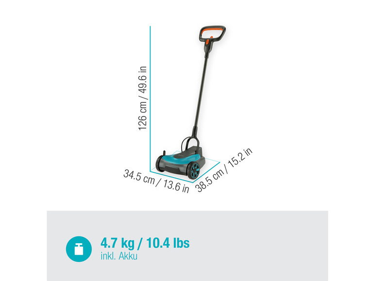 - Ideal für kleine Gärten – mit einer Akku-Laufzeit von max. 25 Minuten und für eine Fläche bis zu 50 m²