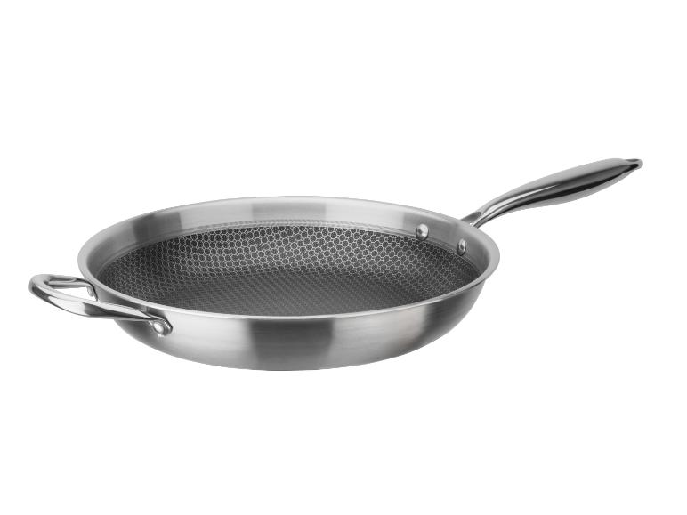 | Griff: | hitzeabweisender Edelstahlgriff und Gegengriff |