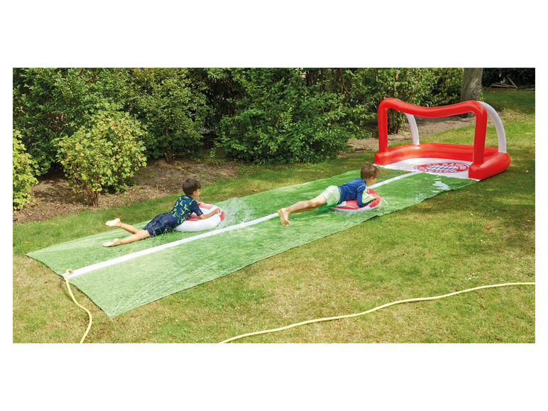 Lieferumfang: | 1x Rutsche, 2x Boards in Fußballdesign, 1x Tor als Ziellinie, 1x Gartenschlauchanschluss |