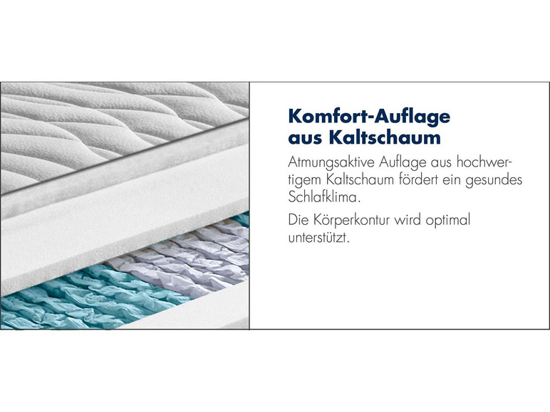 - Kernaufbau: Tonnentaschenfederkern ca. 1000 Federn (Basis 100 x 200 cm) mit beidseitiger Komfortauflage aus Kaltschaum