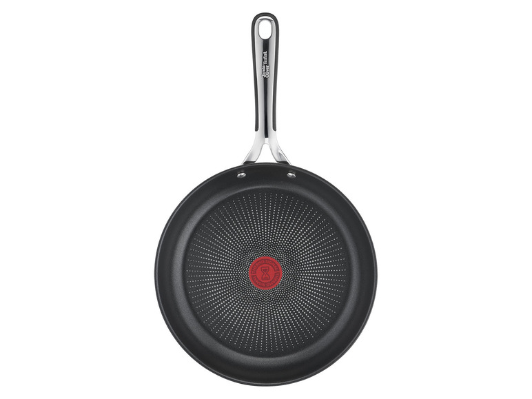 Der elegante, genietete Griff besteht aus Silikon und bietet einen komfortablen, sicheren Halt. Die Antihaftversiegelung ist mit Titanpartikeln verstärkt, was sie extrem widerstandsfähig und leichter zu reinigen macht. Die Pfanne hat die ideale Brattemperatur erreicht, wenn sich die Sanduhr im THERMO-SIGNAL™ einheitlich dunkelrot färbt. Thermo-Fusion™ Integral Induktionstechnologie für eine gleichmäßige Wärmeverteilung für schnelle und gleichmäßige Bratergebnisse.