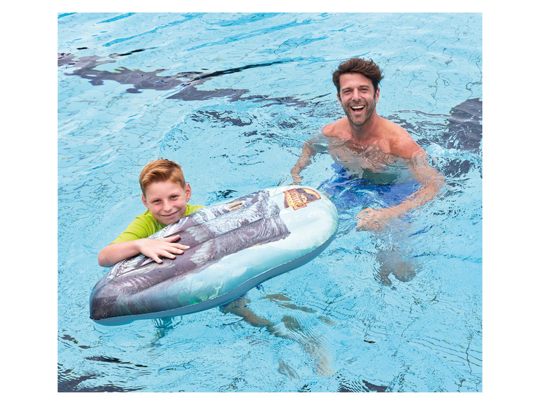 Der Jurassic World Floater im Dino-Design ist ein absoluter Hingucker. Mit einer Größe von aufgeblasen ca. 85 x 50 x 13 cm (unaufgeblasen ca. 88 x 57 cm) ist er leicht zu verstauen und lässt sich einfach transportieren.