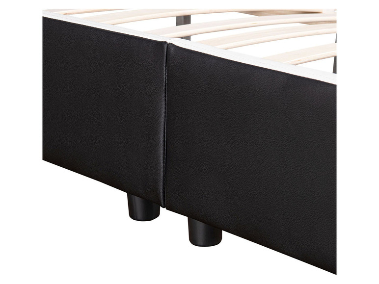 Der 149,5 × 217 cm bzw. 189,5 × 217 cm große Bettrahmen aus MDF-Holz stützt dich zuverlässig in deinem wohlverdienten Schlaf. Er ist überaus langlebig wie auch einfach im Aufbau und zudem weich gepolstert. Der Bezug aus widerstandsfähigem Kunstleder lässt sich spielend einfach mit einem feuchten Tuch reinigen.