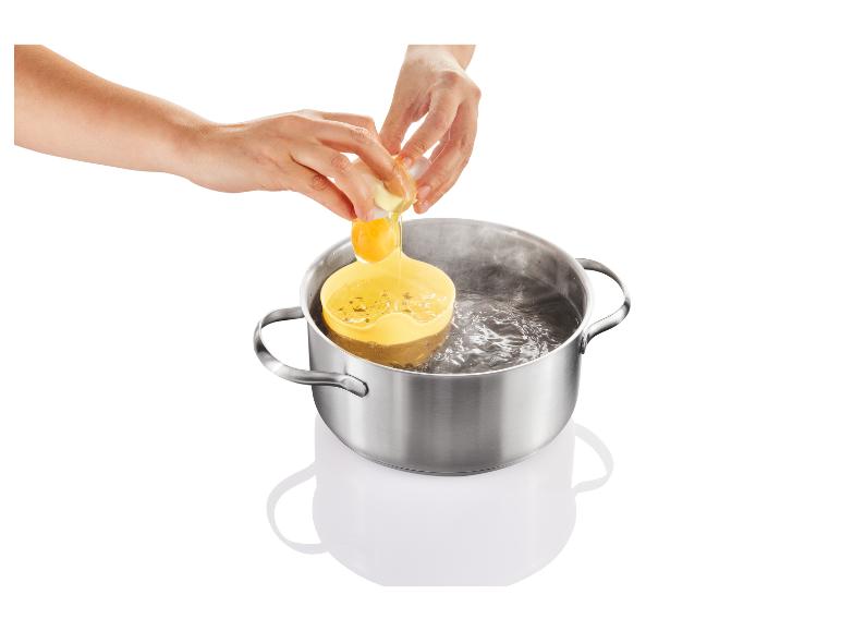 | Maße: | Eierpochierer-Set: je ca. Ø 10 x H 8,8 cm Spiegelei-Ring-Set: je L 9,5 x B 9,5 x H 6 cm Omeletteform: L 21,7 x B 11,9 x H 2,6 cm (zusammengeklappt) |