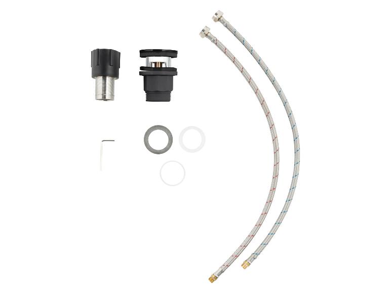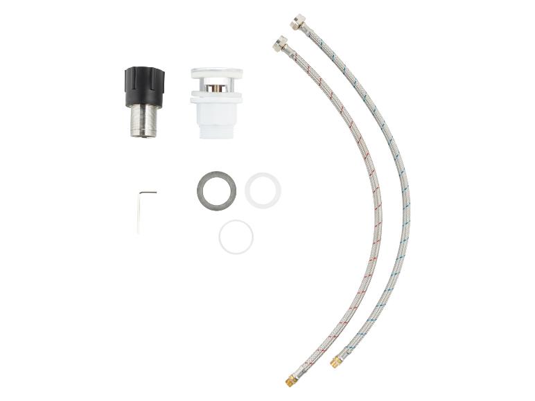 | Lieferumfang: | 1x Waschtischarmatur mit Einhebelmischer, Gewinderohrstange, 2x flexible Anschlussschläuche, inkl. Montagematerial und -anleitung (Kunststoffmutter, Dichtung, Kunststoff-Unterlegscheibe, Sechskantschlüssel) |
