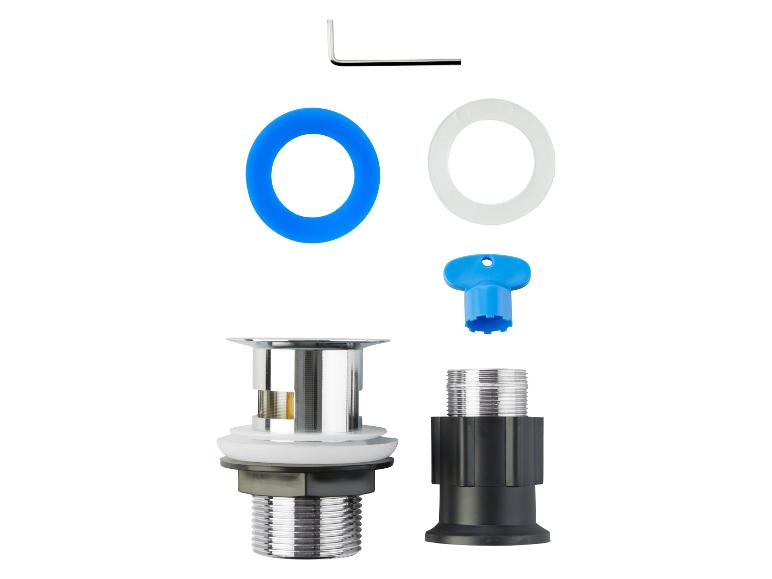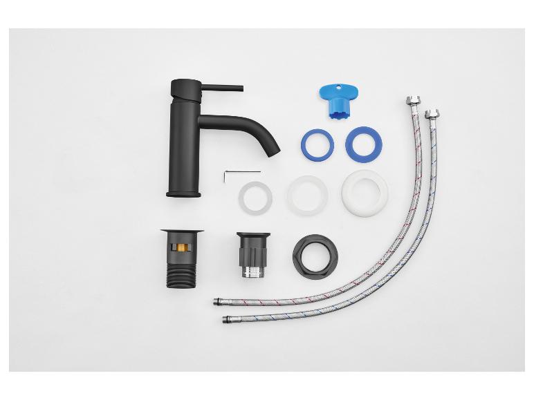 | Lieferumfang: | Einhebelmischer, flexible Anschlussschläuche, Sechskantschlüssel, Strahlreglerschlüssel, Druckknopf-Ablaufgarnitur inkl. Befestigungsmaterial |