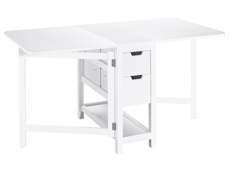| Maße: | ca. L 150 x B 74 x H 80 cm (ausgeklappt), je Tischplatte ca. L 80 x B 60 cm |