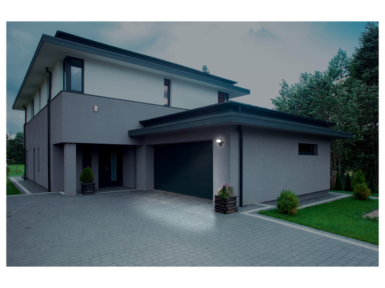 - Integrierter Bewegungsmelder mit Dämmerungssensor, regulierbarer Empfindlichkeit und einstellbarer Reichweite (ca. 1–8 m)
