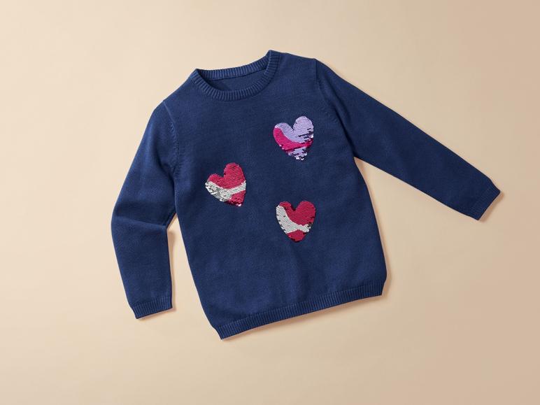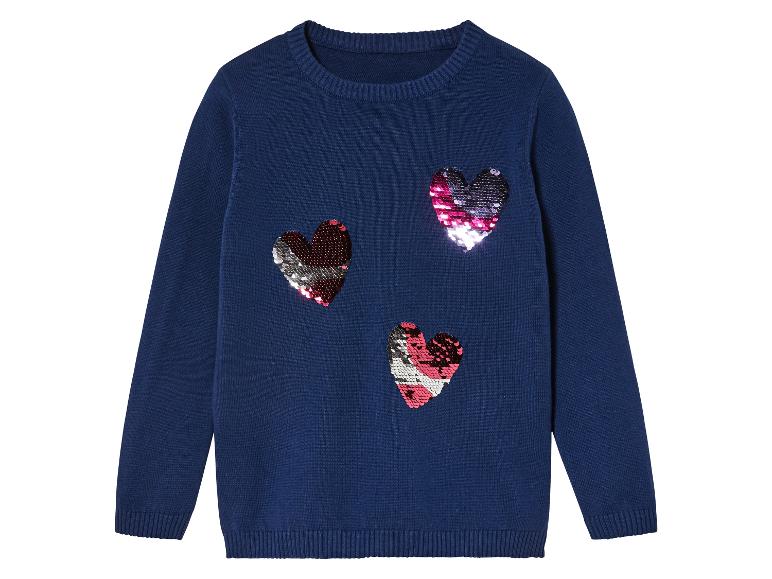 | Detail: | Rippbündchen am Halsausschnitt, Ärmel- und Saumabschluss; marine: mit Wendepailletten in Herzform |