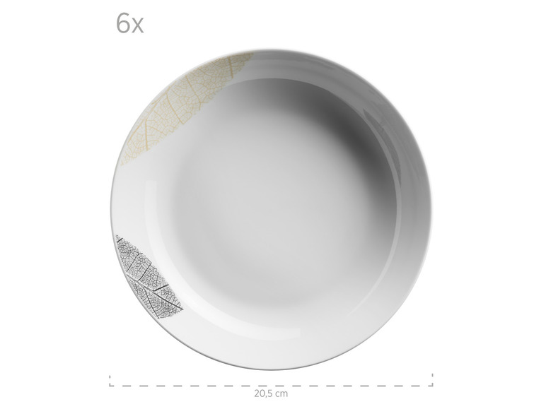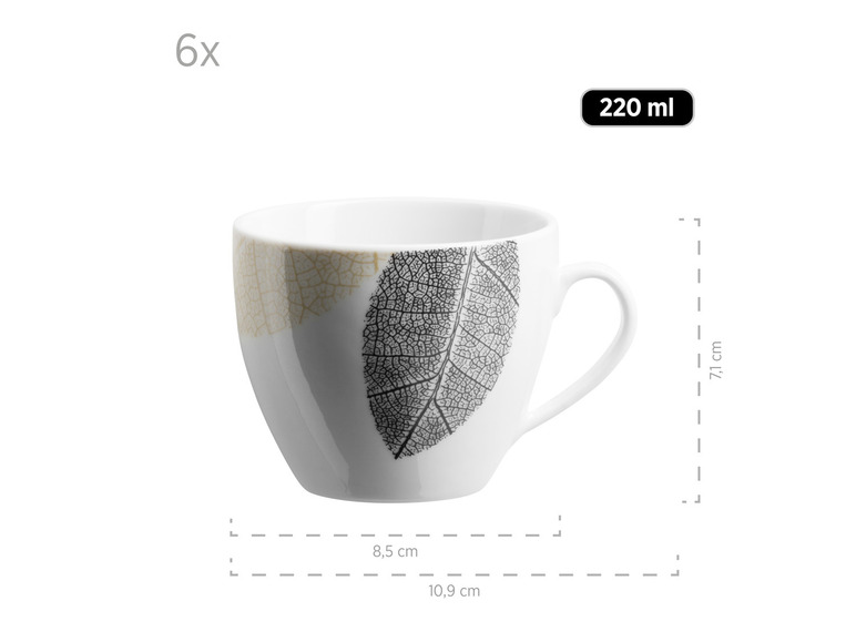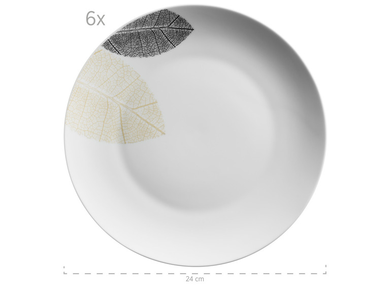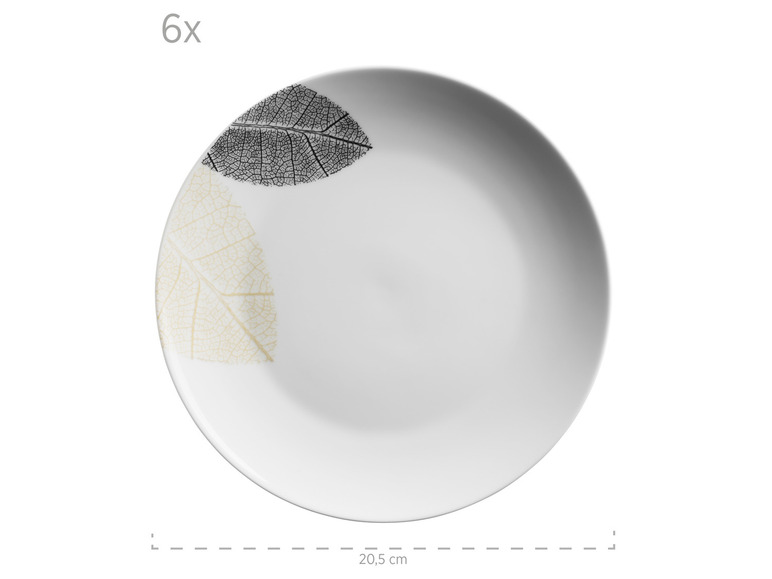 Die Porzellangeschirr-Serie JONA der österreichischen Traditionsmarke MÄSER präsentiert sich mit einem großflächigen, feingliedrigen Blätterdekor auf modernen randlosen Formen. Verspielt und dennoch elegant, klassisch und zugleich modern – die Schönheit dieser Kollektion ergibt sich aus der Verbindung von traditionellen und topaktuellen Design-Elementen. Dieses Kombiservice für 6 Personen bietet eine Ihnen solide Ausstattung für den Einsatz vom Frühstück über den Nachmittagskaffee bis hin zum dreigängigen Dinner. Alle Teile sind dauerhaft spülmaschinen- und mikrowellengeeignet, und dadurch äußerst pflegeleicht.