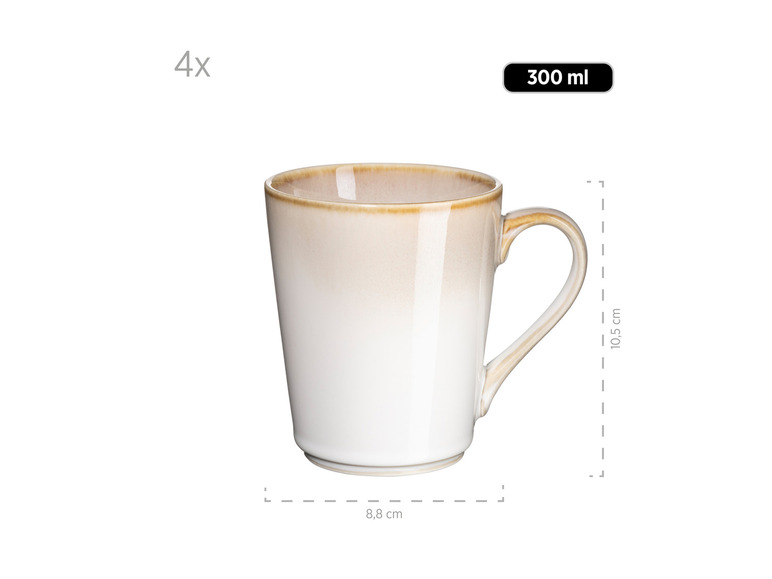 - Kaffeebecher: ca. 8,8 x 10,5 cm