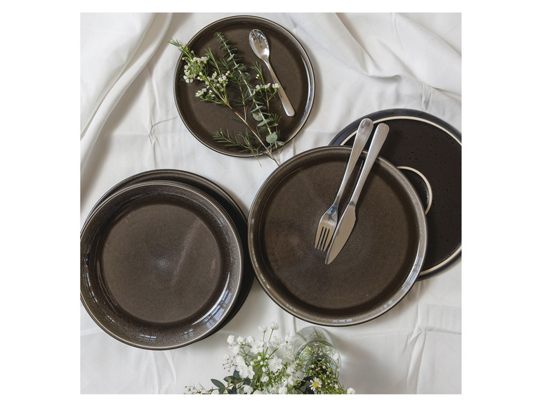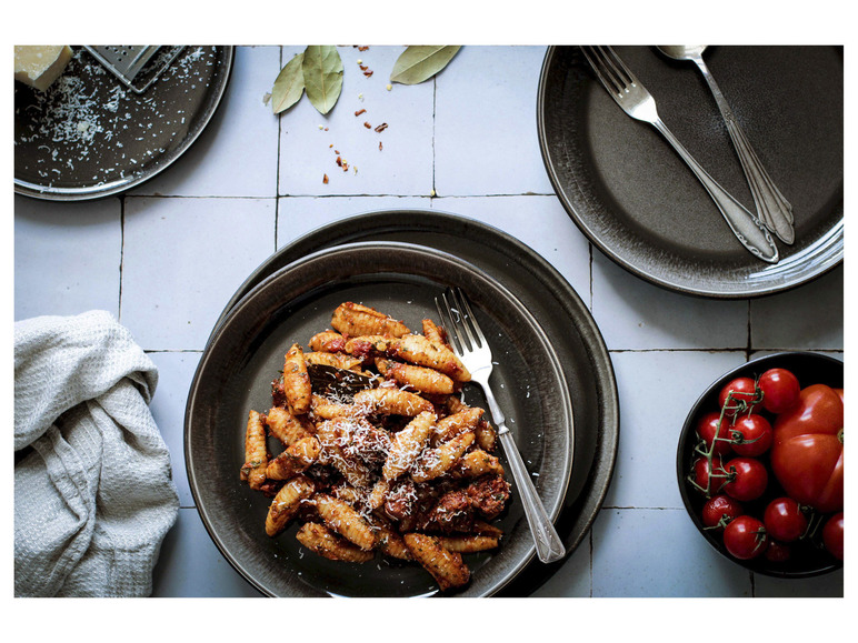 Die unvergleichliche Keramikgeschirr-Serie "Niara" der österreichischen Traditionsmarke Mäser verbindet auf einzigartige Weise selbstbewusste skandinavische Formen mit zwei unterschiedlichen, aufwändigen Glasurtechniken: Auf den Ober- bzw. Innenseiten der Geschirrteile fließen strahlende Farbschattierungen auf schwarzem Untergrund zu wunderbaren Maserungen zusammen. Die Außen- bzw. Unterseiten hingegen bestechen durch eine Mattglasur in Schwarz, welche mit glänzenden schwarzen Sprenkeln überzogen wurde. Durch die händisch aufgetragenen Farben ist jedes Teil in dieser Kollektion auf allen Seiten einzigartig gemustert. Mit ihrem exquisiten und individuellen Charakter ist die Kollektion "Niara" ein echter Hingucker auf jedem Esstisch. Gefertigt aus langlebigem, hochwertigem Steinzeug (welches nicht mit dem deutlich brüchigeren Steingut zu verwechseln ist) wird Ihnen dieses Geschirrset lange Freude bereiten. Selbstverständlich ist die gesamte Serie "Niara" mikrowellen- und spülmaschinengeeignet. Dieses Set wird in einer vielfach auf Bruchsicherheit getesteten Paketversandverpackung aus nachhaltigen Materialien versendet. Bitte beachten Sie: Diese Kollektion wird händisch lasiert, wodurch minimale Unebenheiten der Glasur, kleine Einschlüsse und leichte Farbabweichungen auftreten können. Zur besseren objektiven Vergleichbarkeit gehen unsere Füllmengenangaben von einer randvollen Befüllung aus.