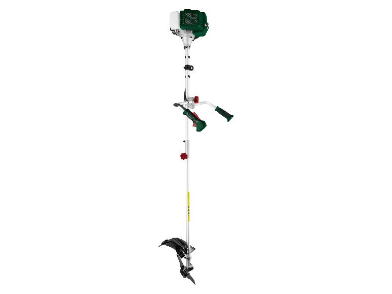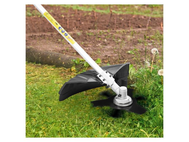 Maße: | Motoreinheit: ca. 103,8 x 69,5 x 38,5 cm inkl. Griff Messer- und Fadenspulenvorsatzrohr: ca. 855 x 90 x 79 mm Fadenspule: ca. Ø 128 x 65 mm 3-Zahn-Schnittmesser: ca. Ø 255 x 1,4 mm |