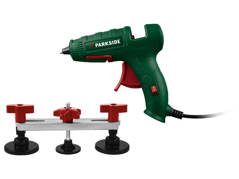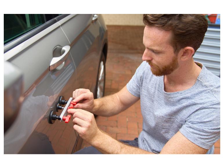 | Maße: | Klebepistole: ca. L 143 x B 140 x H 36 mm Dellen-Reparatur-Bügel: ca. L 142 x B 24 x H 10 mm |