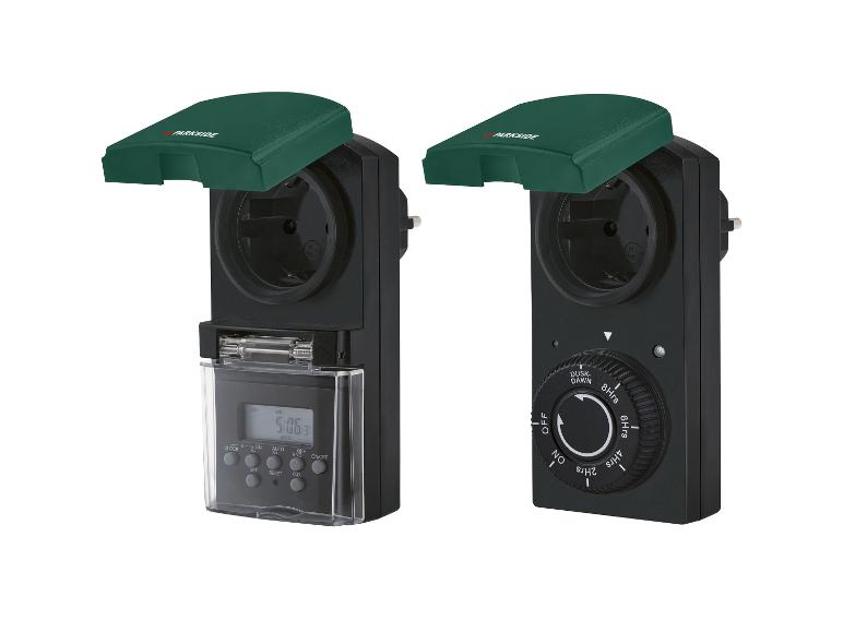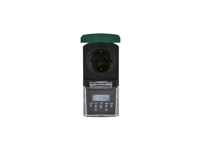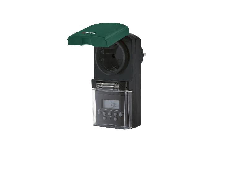 Maße: | Digitale Zeitschaltuhr: ca. L 9 x B 6,3 x H 13,4 cm Steckdosenadapter: ca. L 9,5 x 6 x 13 cm |