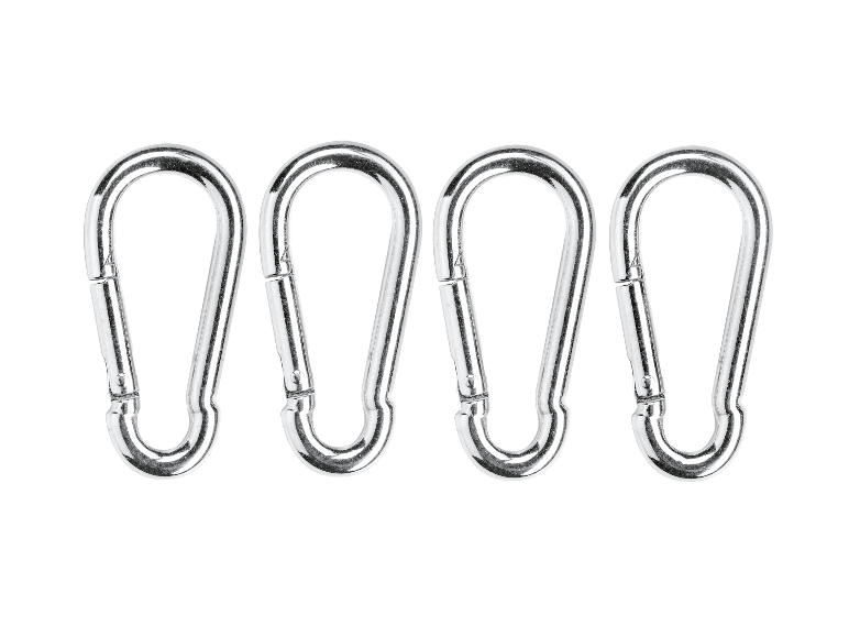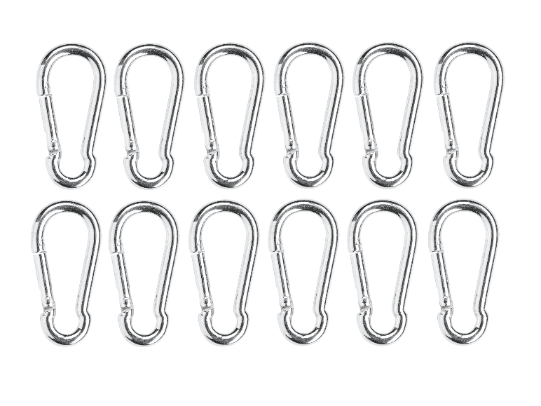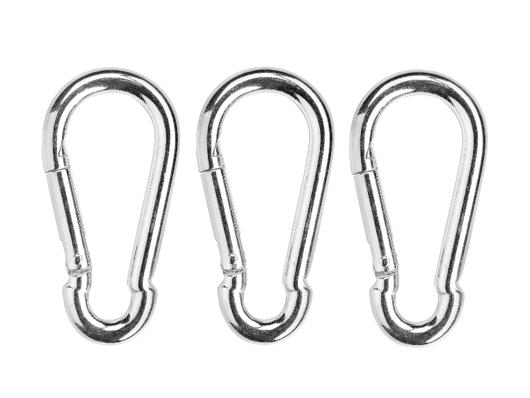 | Gewicht: | 3er Set Karabinerhaken: ca. 360 g; 4er Set Karabinerhaken: ca. 244 g; 12er Set Karabinerhaken: ca. 176 g; 6er Set Schäkelhaken: ca. 348 g |