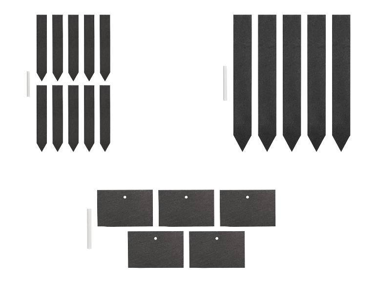 Maße: | Pflanzstecker Schiefer Set klein: ca. L 20 x B 3 cm Pflanzstecker Schiefer Set groß: ca. L 30 x B 4 cm Pflanztafel Schiefer Set quadratisch: ca. L 7 x B 10 cm Kreide: ca. L 7 cm |