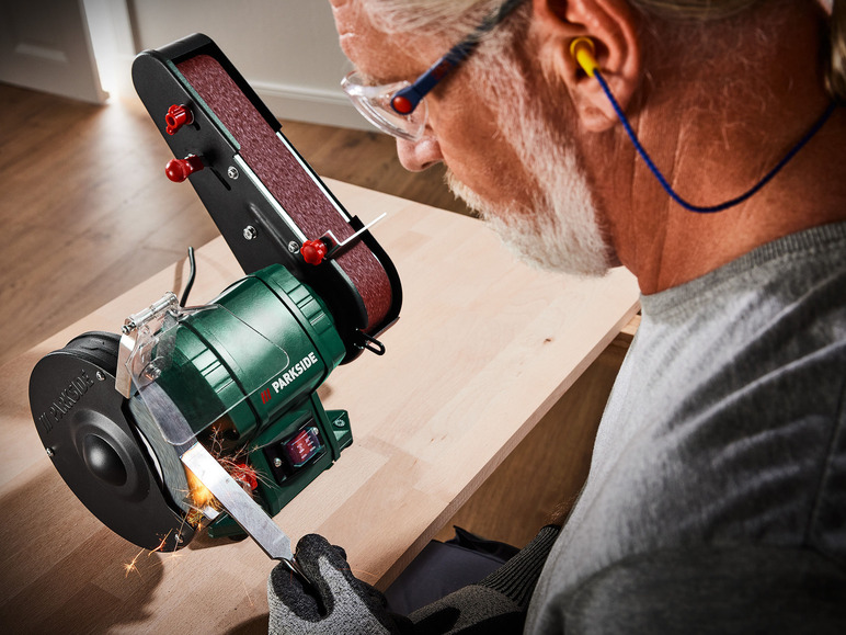 - Passend für handelsübliche Schleifscheiben und Schleifbänder