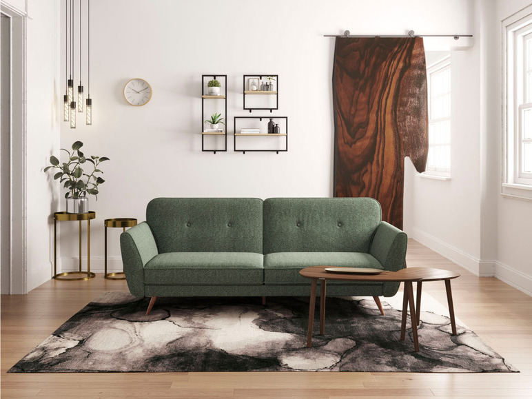 Das 3er Bettsofa »Kopenhagen« ist die perfekte Couch für das moderne Wohnen. Der hochwertige Webstoff mit einer leichten Struktur verleiht dem Schlafsofa einen hippen und dennoch zeitlosen Look. Abgerundet wird das Design durch die Massivholzfüße. Die Sitzfläche hat eine bequeme Wellenfederung mit komfortabler Schaumstofffüllung. Das coole Sofa kann auch frei im Raum stehen, da der Rücken ebenfalls stoffbezogen ist. Und wenn Gäste mal länger bleiben wollen, ist das Sofa im Handumdrehen in ein vollwertiges Schlafsofa umzuwandeln. Das bequeme 3er Sofa mit Schlaffunktion eignet sich besonders gut im Wohn- und Jugendzimmer, im Gästezimmer oder in der Lounge.