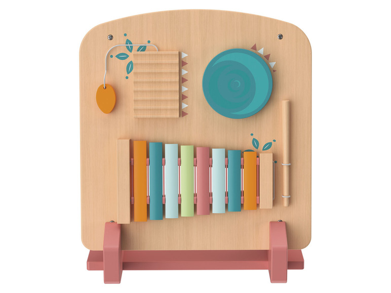 - Musik-Wandspiel: mit liebevoll gestalteten Musikelementen: Xylophon, Ratsche und Drehscheibe
