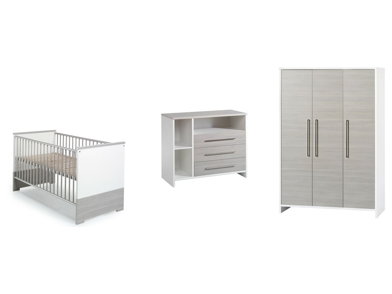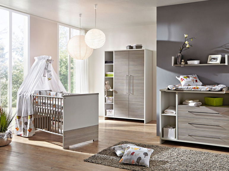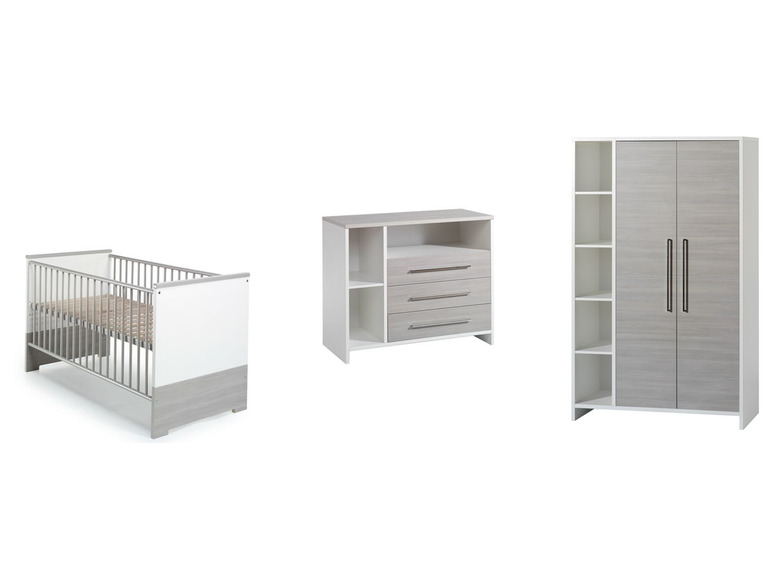 Kinderzimmer Set Eco Silber, bestehend aus Kinderbett, Umbauseiten und Wickelkommode