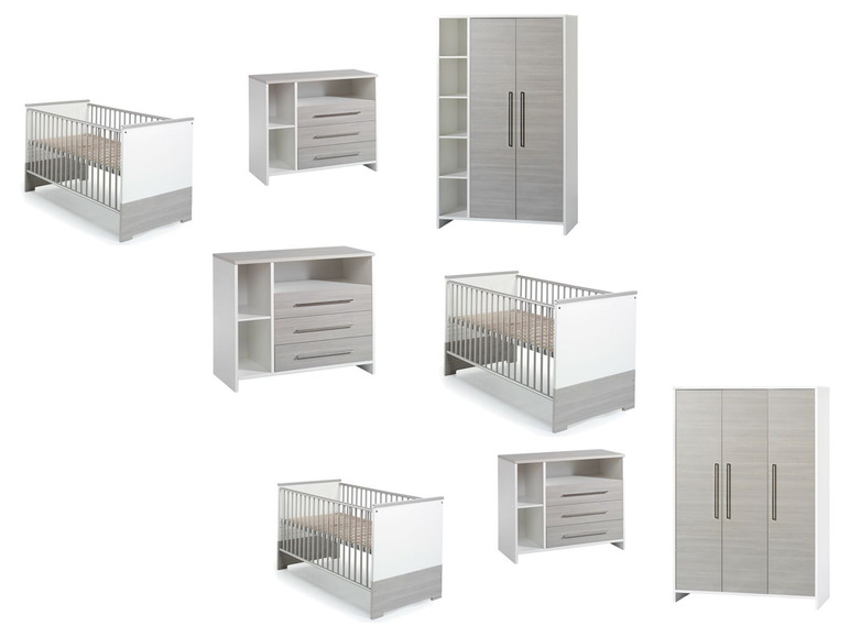 - Bestehend aus Kombi-Kinderbett, Umbauseiten und Wickelkommode