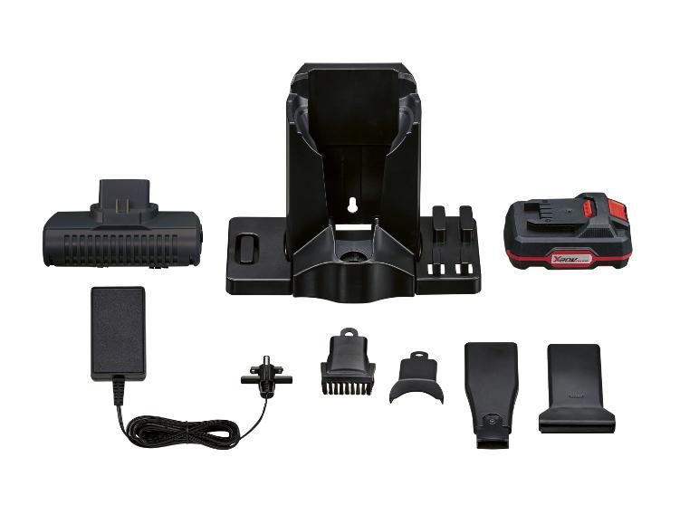 | Lieferumfang: | 1x 20-V-Akku-Handstaubsauger mit 1x Fugendüse, 1x Universaldüse, 1x kleiner Bürstenaufsatz, 1x Nasssaugdüse, 1x motorisierter Bürstenaufsatz, 1x 1-A-Ladeadapter (1,5 m), 1x Akku 20 V/2 Ah und 1x Ladestation inkl. Montagematerial |