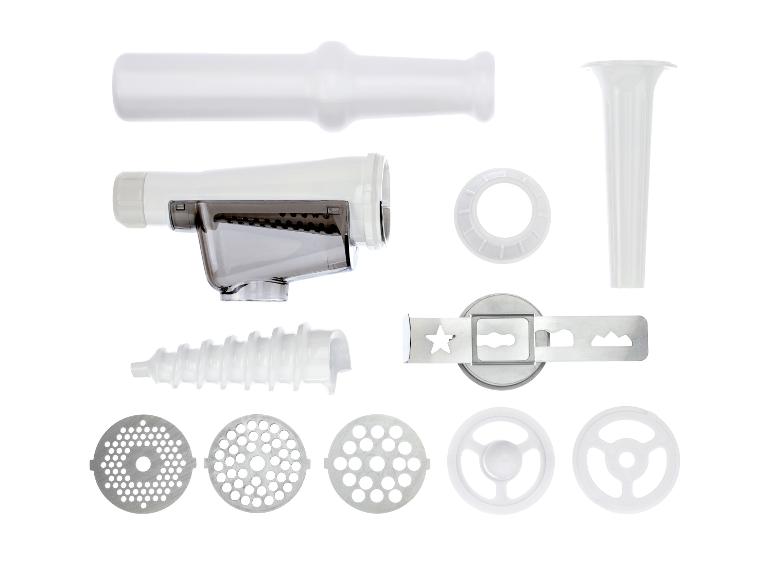 Ausstattung: | 1x Fleischwolf, 1x Einfüllschale, 3x Lochscheiben, 1x Tomatenpassierer-Aufsatz |