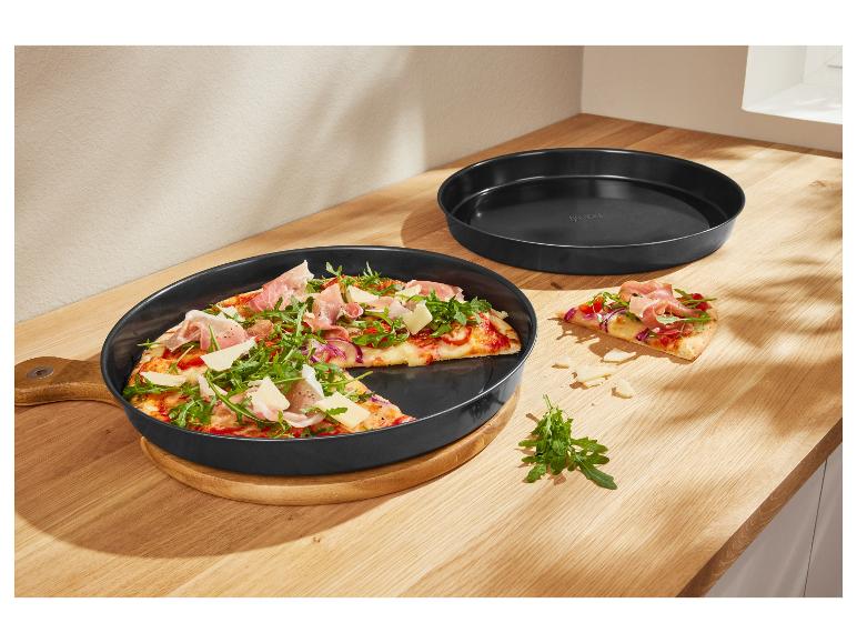 | Maße: | Quiche- und Obstkuchenformen: ca. Ø 28 x H 3 cm; Pizza-Backbleche: ca. Ø 32 x H 3,6 cm |