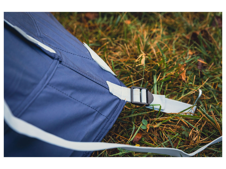 Das stabile und solide Zeltgestänge aus verstärktem Fiberglas (Dura-Poles) sorgt in Kombination mit den qualitativ hochwertigen Materialien für sehr gute Stabilität. Dura Poles sind wesentlich flexibler und bruchsicherer als herkömmliches Fiberglas-Gestänge. Wenn Du das Zelt zusätzlich noch mit den mitgelieferten Spannleinen abspannst, wird Dir auch ein Sommergewitter wenig anhaben.