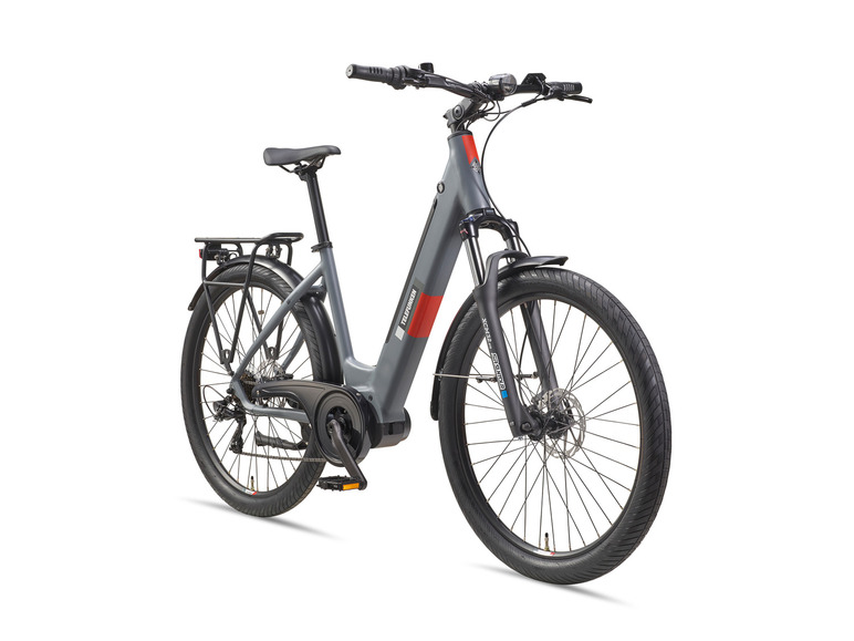 Das Telefunken SUV E-Bike SUV500 ist ein echter Allrounder. Egal ob im urbanen Umfeld oder auf Schotterwegen. Der leistungsstarke 250 Watt / 36 Volt Mittelmotor unterstützt auch bei längeren Touren und hilft bei entsprechender Steigung. Die Rahmenform sorgt mit dem niedrigen Einstieg für mehr Sicherheit und Fahrkomfort. Dabei verschwindet der Hochleistungsakku mit 468 Wh optisch komplett im Unterrohr. So sind die Zellen ideal vor äußeren Einflüssen geschützt. Mit wenigen Handgriffen lässt sich der Akku z.B. zum Laden entnehmen. Zudem sorgt die 27,5 Zoll Bereifung des Pedelecs für mehr Laufruhe und Fahrspaß. Maximale Sicherheit wird durch die hochwertigen Scheibenbremsen gewährleistet - selbst bei höheren Geschwindigkeiten. Das SUV E-Bike ist ausgestattet mit einer 7-Gang-Kettenschaltung, dies ermöglicht Ihnen mühelos jedes Terrain zu meistern und hilft Ihnen im urbanen Alltag. Das moderne, verstellbare LCD-Display liefert Ihnen während der Fahrt alle relevanten Informationen – von Ihrer aktuellen Geschwindigkeit bis zur bereits zurückgelegten Strecke. Das Fahrrad ist vollständig ausgestattet nach StvZO. Erleben Sie Mobilität neu mit dem Telefunken E-Bike SUV500 – ein echter Allrounder.