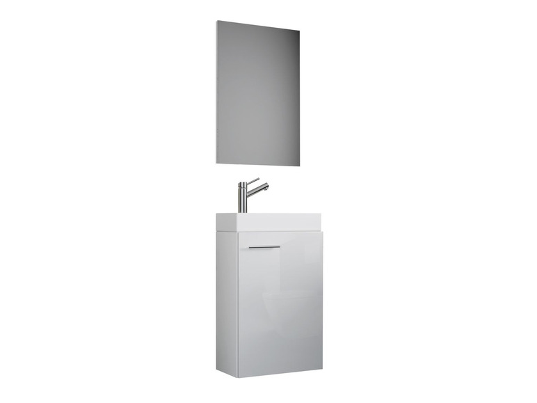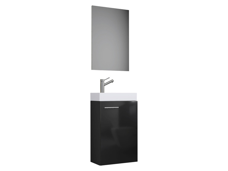 - Das Set besteht aus einem Spiegel oder Spiegelschrank und einem Waschbecken mit Waschbeckenunterschrank