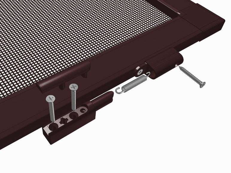 Im Set ist alles für die bohrfreie Befestigung der Insektenschutztüre enthalten. Pulverbeschichtete und witterungsbeständige Aluminiumprofile eignen sich für langjährigen Einsatz. Weitere Besonderheiten der selbstschließenden Insektenschutztüre sind die lückenlose Abdichtung, die passgenau kürzbaren Aluminiumprofile, das reißfeste, luftdurchlässige Fiberglasgewebe und ein Trittblech. Endlich lüften, ohne von ungebetenen Insekten gestört zu werden.